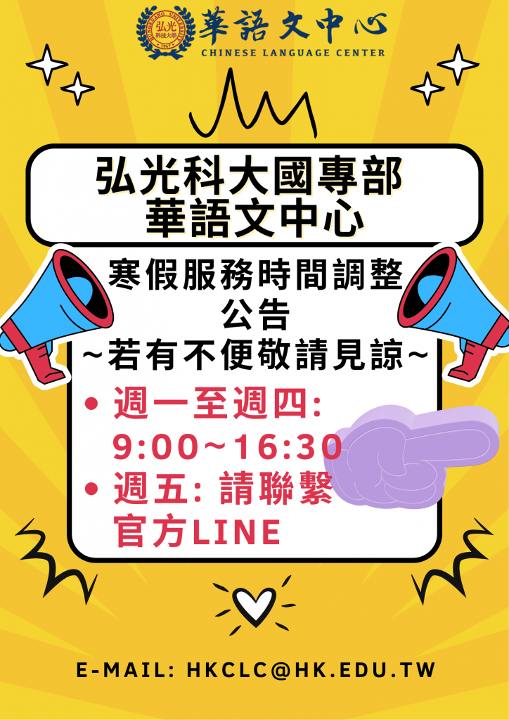 【寒假(1/12~2/22)服務時間調整公告】